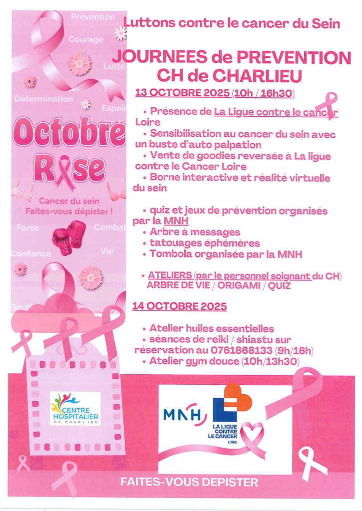 JOURNÉES DE PRÉVENTION LES 13 ET 14 OCTOBRE AU CENTRE HOSPITALIER DE CHARLIEU